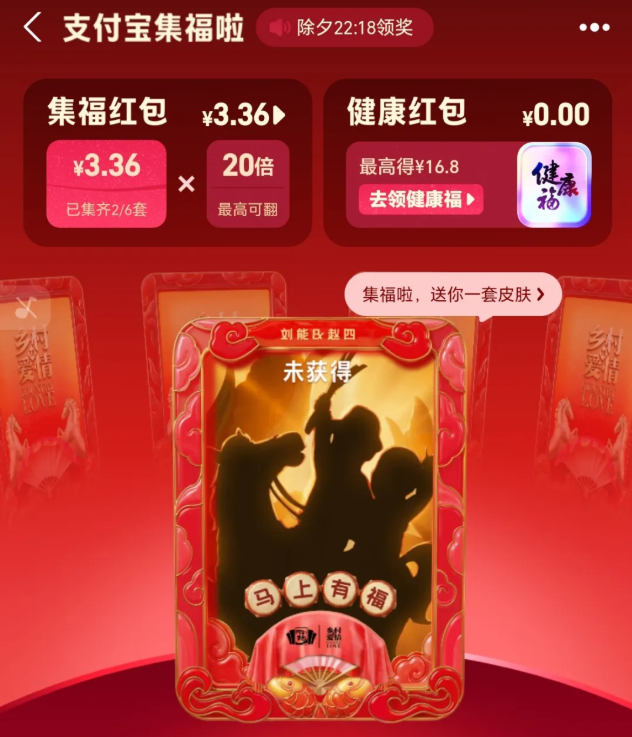 2月3日,支付宝上线了“支付宝集福啦”活动,加入了春节红包大战,为支付宝扩大影响力、增加客户粘性、提升市场占有率而战!