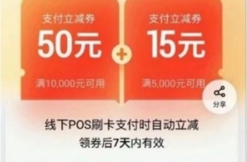 变天了!平安信用卡居然推出了POS机立减券,线下POS刷卡消费就可以使用,满额时自动抵扣。 平安信用卡此次推出的立减券活动力度很大,用户使用POS机刷信用卡,即可享受立减优惠。具体来说,刷满5000元即可立减15元,刷满1万元则可立减50元。 注意,此立减券只能通过线下POS刷卡消费抵用,此举意味着鼓励客户用POS机消费? 业内都知道,扫码支付的手续费确实较少,而POS机刷卡的手续费则相对较高。但平安信用卡此次推出POS机立减券,是否在向市场传递一个信号:尽管扫码支付便捷,但POS机消费仍有其独特优势。 此次鼓励POS机消费,或许对未来支付市场的风向标有所影响。同时,有可能其他银行后续也会跟进...